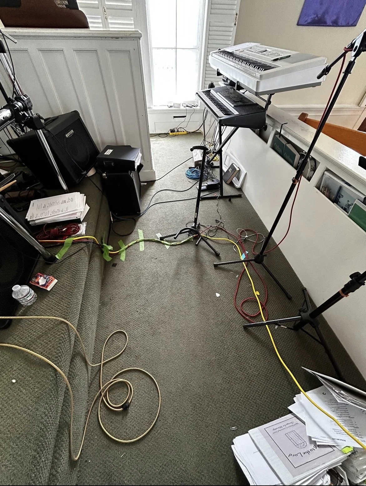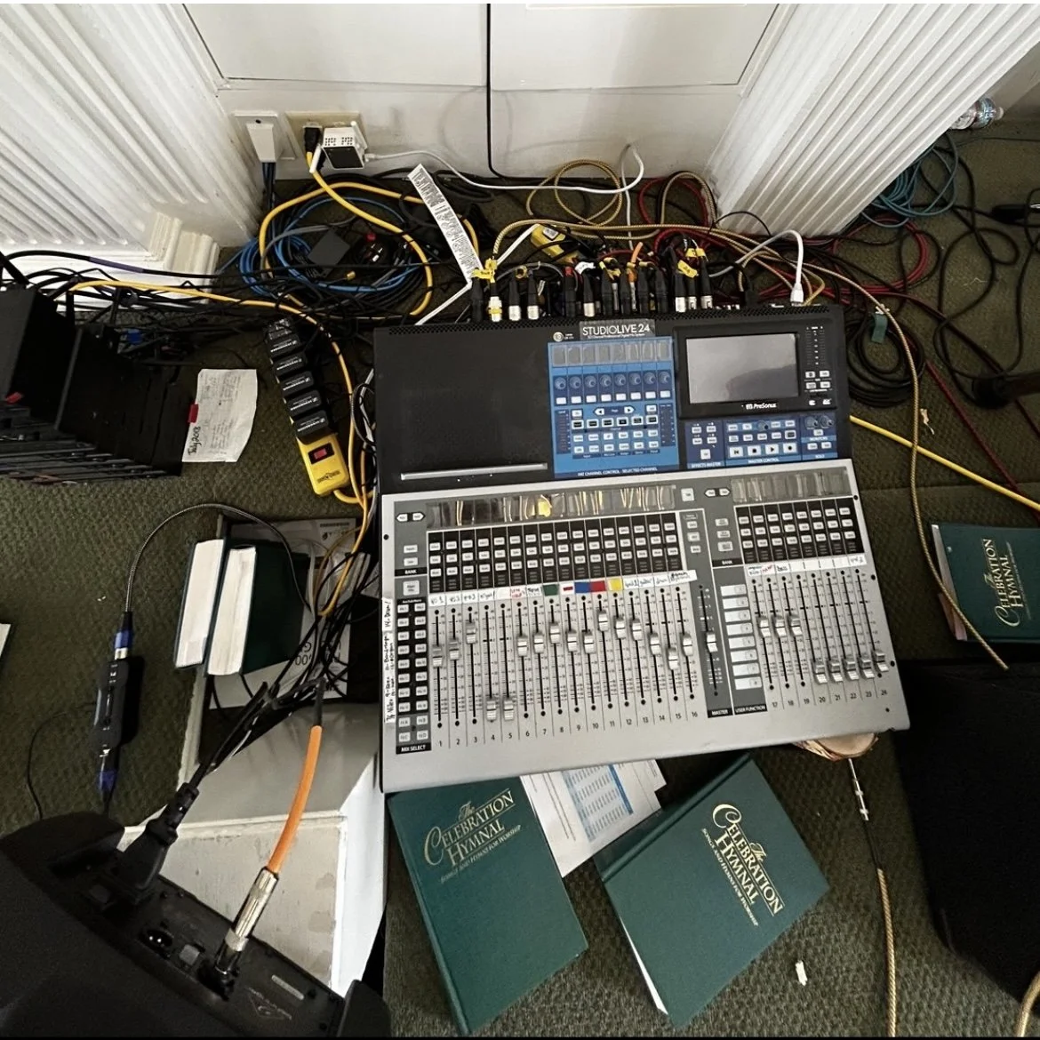 Tech Support in the form of: troubleshooting mixer/stage technical problems, EQing instruments and vocal channels, running sound for special events and services, cable management and stage/tech booth cleanup, teaching the basics of operating a digital mixer, etc.
